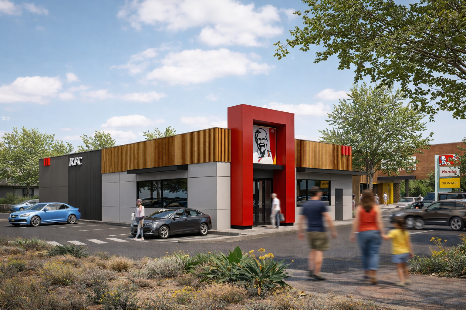In a crowded market, visual appeal plays a pivotal role in a quick-service restaurant’s (QSR) success, as the design is often the first interaction customers have with the brand. A memorable aesthetic begins with integrating brand identity into the architecture, where elements like color schemes, furniture choices, and layout reflect the brand's values and connect with the target audience. Customer-centric design further enhances the experience by addressing the needs of specific demographics. For instance, a QSR catering to busy professionals might emphasize grab-and-go convenience, while one targeting families may focus on comfortable seating and playful decor that fosters a welcoming atmosphere. Kerb appeal is equally crucial, acting as an invitation to potential customers. The exterior design should stand out in a busy street or shopping center with bold signage, creative lighting, and distinctive architectural features that grab attention and pique interest. A visually impactful QSR not only attracts customers but also leaves a lasting impression that encourages repeat visits, boosting long-term revenue and brand loyalty.